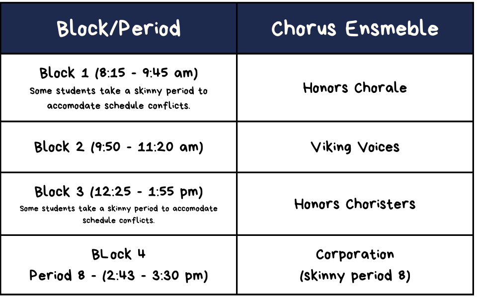 Beginning the 2025-26 School Year, our choir program will slightly adjust to accommodate the new block scheduling.